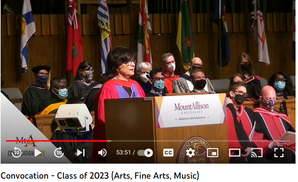 Photo credit: screen shot from the Mount Allison University broadcast of Convocation 2023