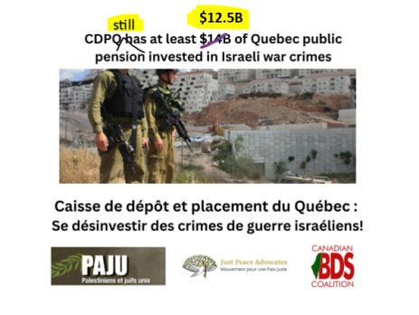 Caisse de dépôt et placement du Québec sheds Israeli police training but still invests $12.5 Billion of Quebec pensioners money in Israeli war crimes