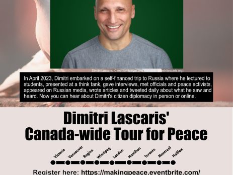 The Canada-Wide Peace and Justice Network (CWPJN) is pleased to announce that it has organized a Canada-wide speaking tour for citizen-diplomat Dimitri Lascaris to report back to Canadians about his recent mission of peace to Russia. The title of the...