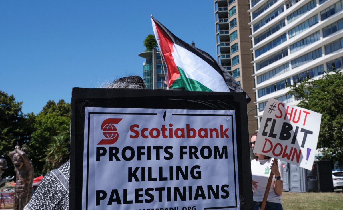 On March 15, activists will hold Scotiabank to account for its $500 million investment in Israeli arms company Elbit Systems. Scotiabank’s asset fund is the largest foreign investor in Elbit, and is thus directly complicit in profiting off Palestinian death and suffering. Already, 18 branches have been “adopted” to picket/ leaflet / shut it down in neighbourhoods from BC to Ontario (and hopefully beyond). Details on the specific locations and times will be posted in the coming days. #ShutElbitDown #ShameOnScotiabank.