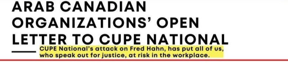 Arab-Canadian organizations issue open letter to CUPE National: