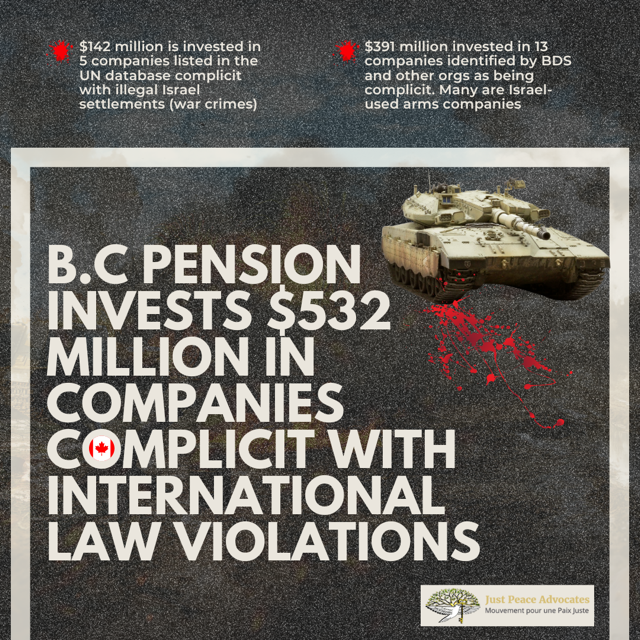 We have been monitoring the human rights situation in the occupied Palestine territory (oPt) and the occupied Syrian Golan and are concerned that investments within public sector pension plans that may facilitate activity that constitutes a war crime under international law.