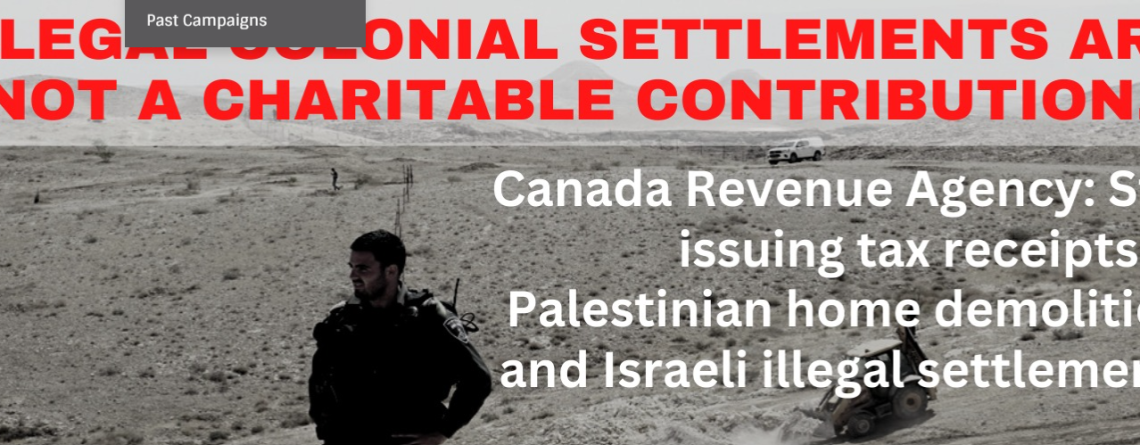 It must be stressed that Mizrachi Canada is one of several Canadian charitable organizations that we are aware of which actively finance illegal Israeli settlement...