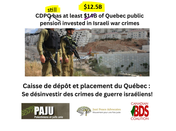 The CDPQ December 31, 2023 year-end report includes over $14 billion of investments in companies complicit with Israeli war crimes and genocide. This represents just...