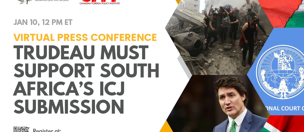 Press conference, Jan, 10th at 12 NOON EST: Trudeau must support South Africa’s ICJ submission