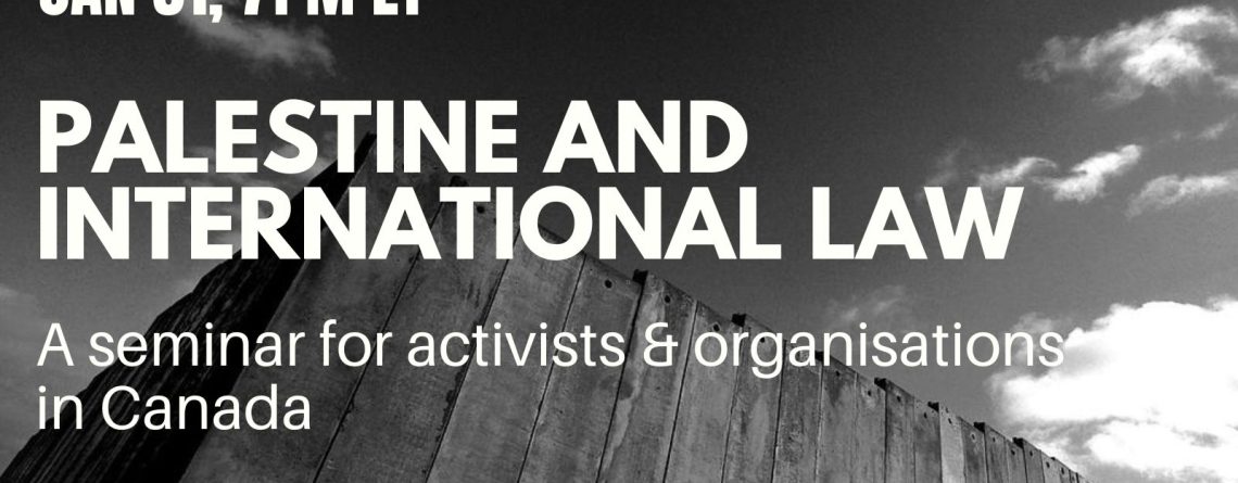 Seminar: Palestine & International Law for activists & organizations, Wed. Jan. 31, 7 PM EST