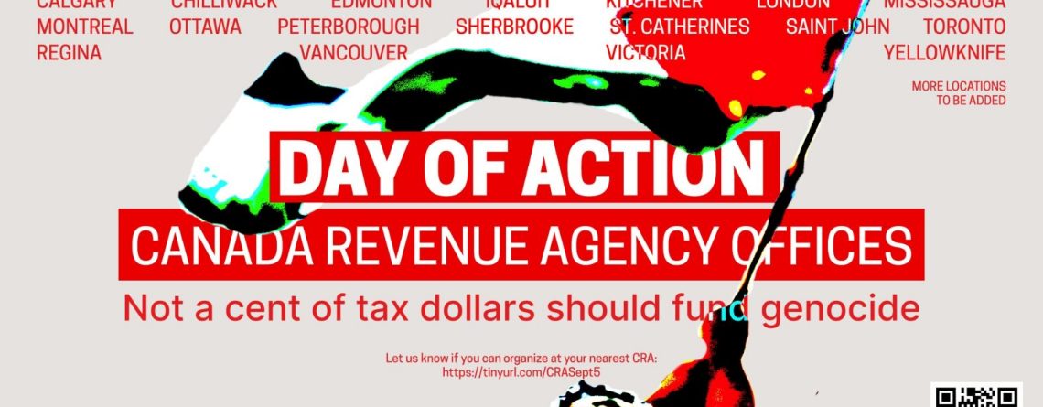 Not one cent of Canadian tax dollars should be funding genocide Actions are being planned on International Day of Charity, September 5th. Montreal, Sherbrooke, London,...