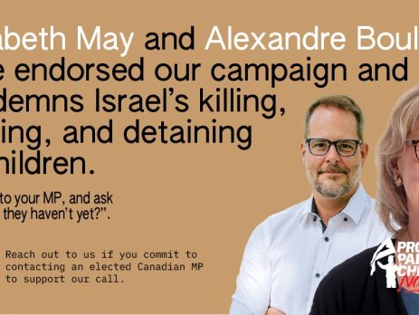 Elizabeth May and Alexandre Boulerice have endorsed our campaign, and condemn Israel's killing, injuring and detaining Palestinian children.