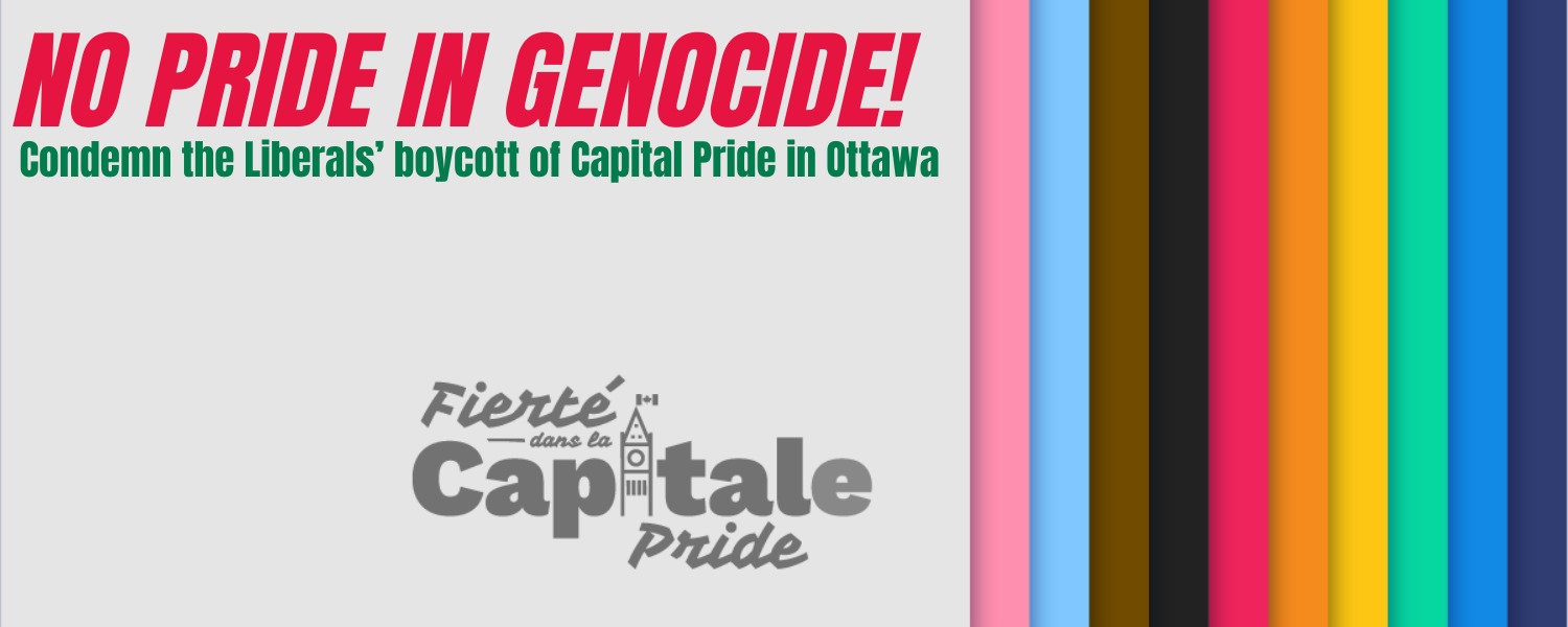 As Canadians standing for inclusivity and against hatred and discrimination, we are deeply concerned that Trudeau and the Liberal Party of Canada decided not to participate in the Capital Pride Parade this week solely because the organisers voiced their opposition to the ongoing slaughter of Palestinians in Gaza by Israel and refused the pink wash attempts by Israel.