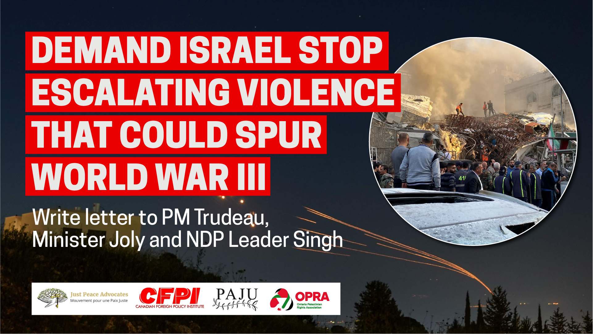 Demand Israel stop escalating violence that could spur World War III