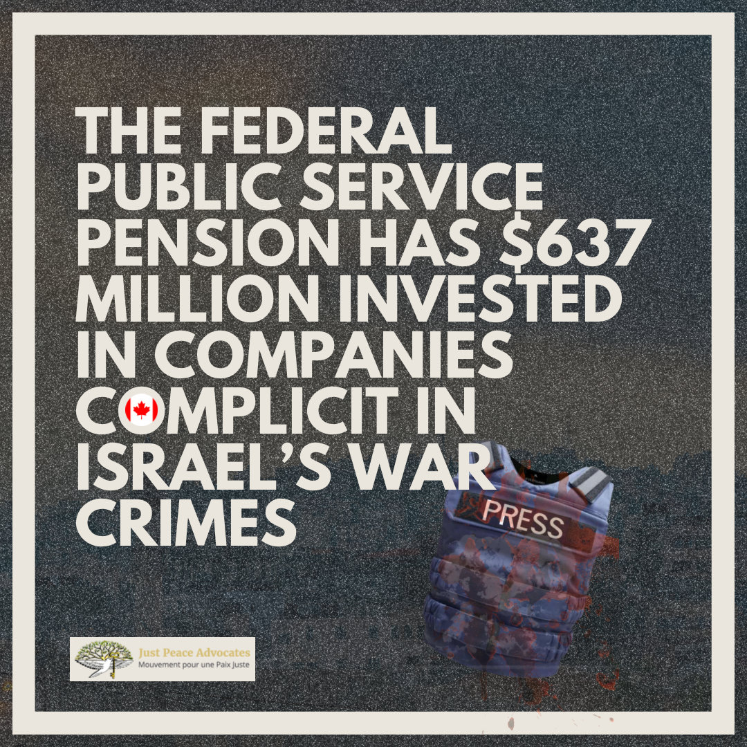 We ask the PSP I to take all steps necessary to ensure that the activities of all companies included in all of its portfolio are in compliance with international law governing war crimes. We remind you that in Canada, parties that are complicit in war crimes are liable to criminal prosecution under the Crimes Against Humanity and War Crimes Act,[1] including corporations.[2]