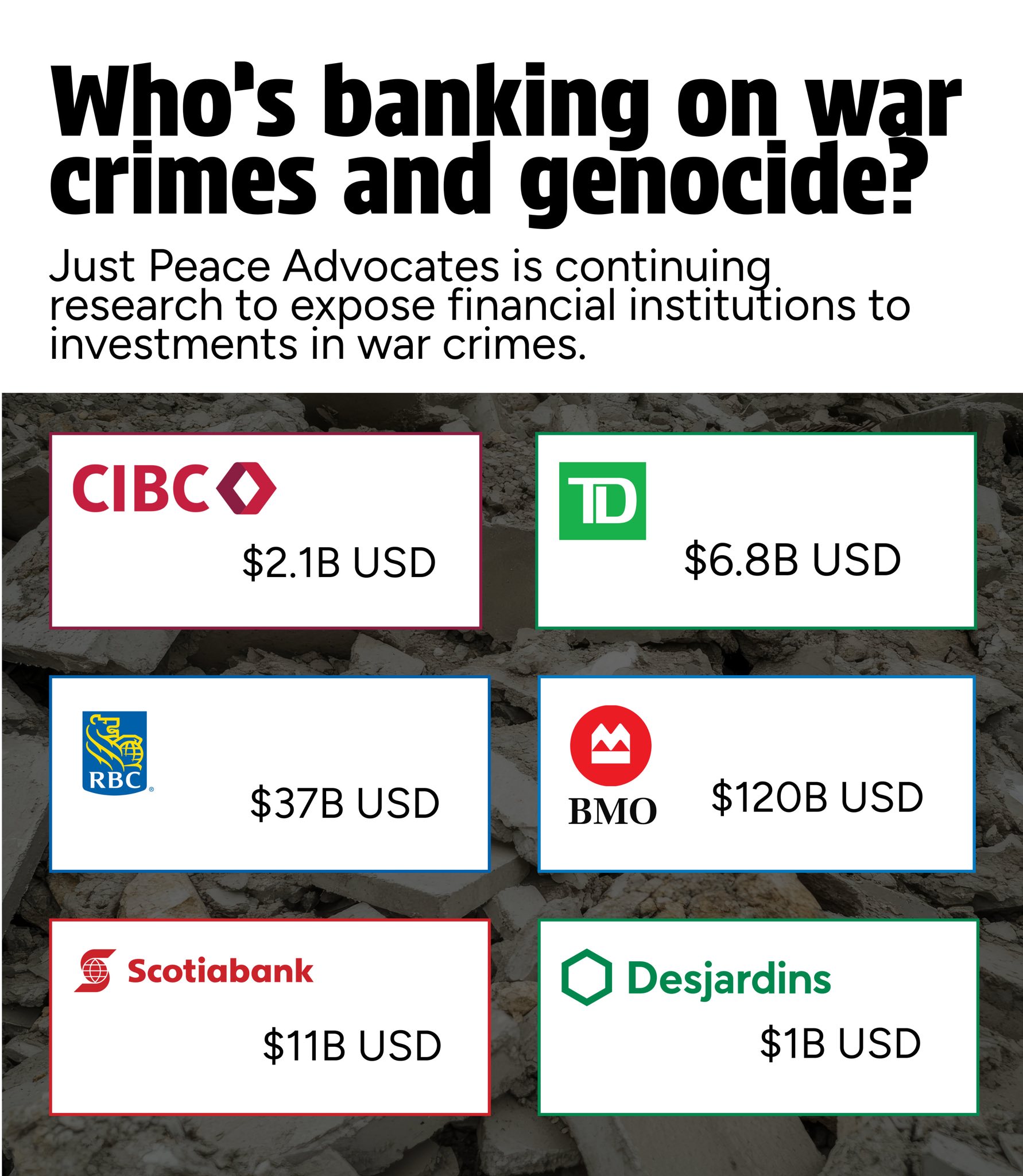 Analysis of Canadian Banks investments in war crimes and genocide.
