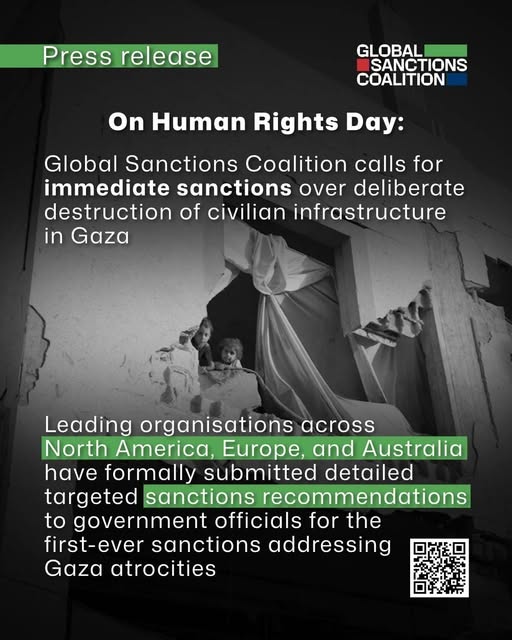 On Human Rights Day: Global Coalition called for immediate sanctions over deliberate destruction of Gaza’s civilian infrastructure