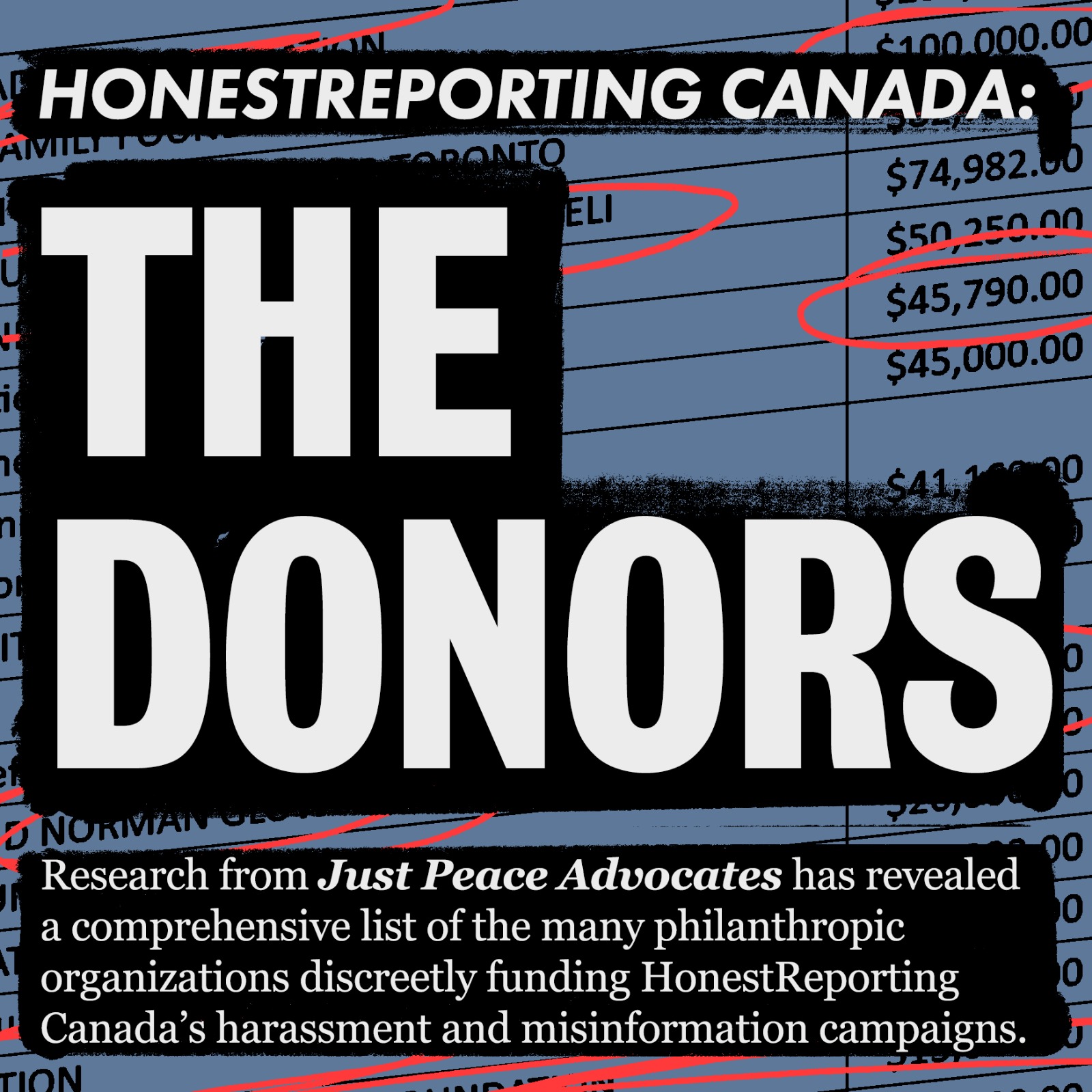 Research from Just Peace Advocates has revealed a comprehensive list of the many philanthropic organizations discreetly funding HonestReporting Canada’s harassment and misinformation campaigns.