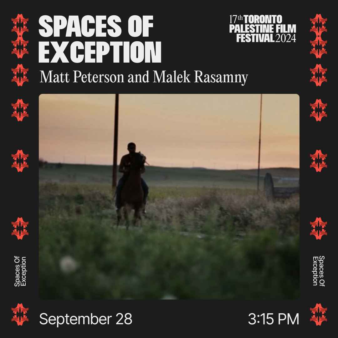 Don’t miss “Spaces of Exception” by Matt Peterson and Malek Rasamny at the Toronto Palestine Film Festival! We’re thrilled to co-present this screening on Saturday, September 28 at 3:00 pm. Get your tickets at www.tpff.ca