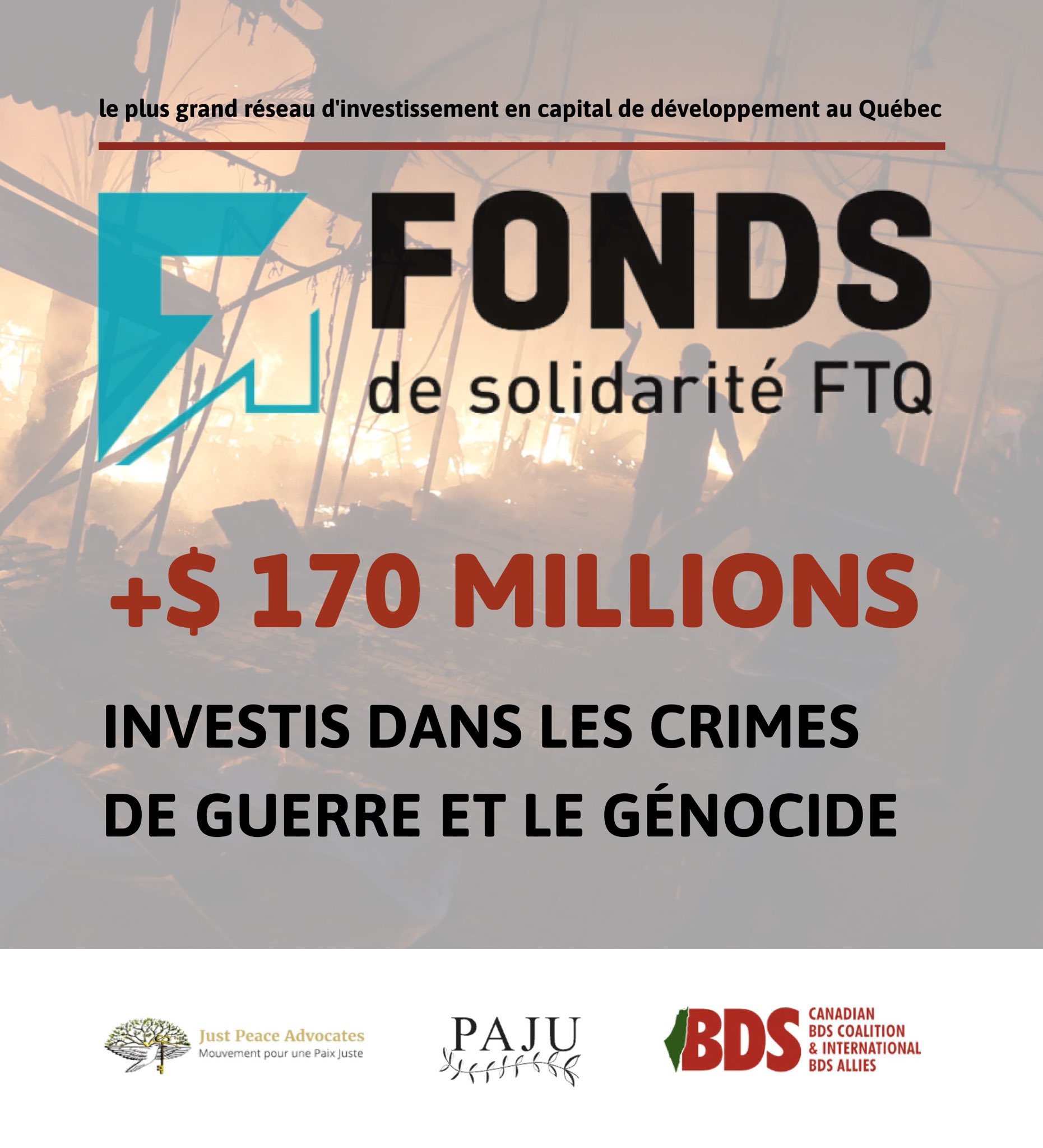 Au total, le Fonds de solidarité FTQ a investi plus de 130 millions de dollars dans des crimes de guerre, dont certains sont complices de génocide.