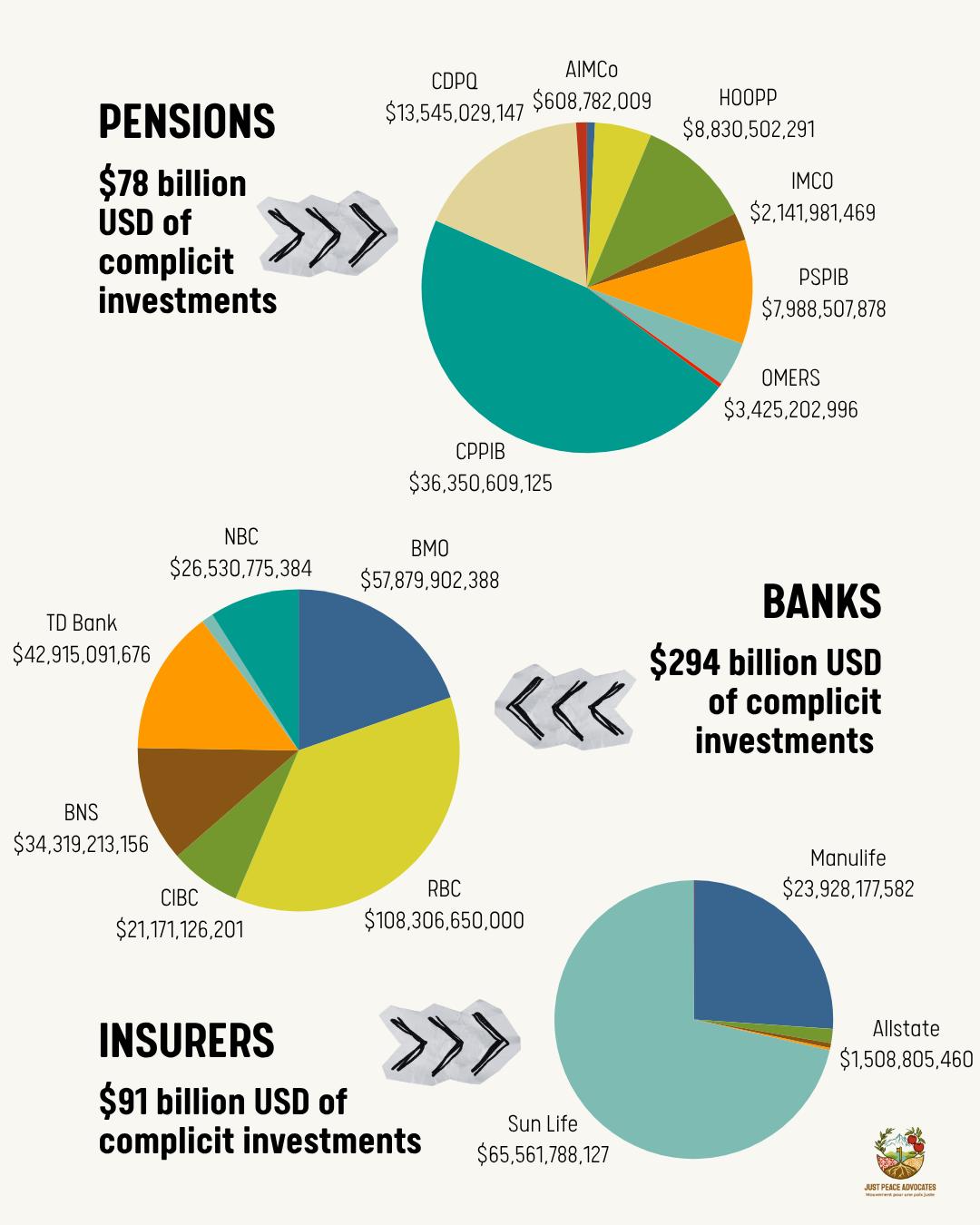 We are grateful to be releasing a brand new report analyzing the investments of more than 100 Canadian financial institutions. This analysis reveals over $526 billion USD invested in complicit companies by pensions, banks, insurance companies, and other investment managers.