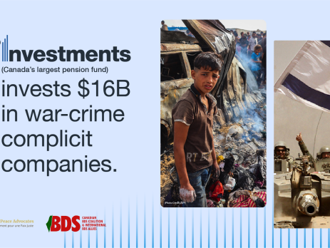 Take a moment to let the Canada Pension Plan know you demand they divest from companies complicit with war crimes and genocide. Write a letter Through October and early November, human rights advocates attended the Canada Pension Plan Investment stakeholder meetings in