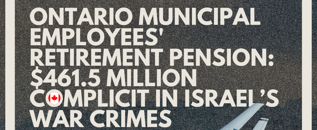 While OMERS does not have investments in UN database listed companies, other companies complicit with Israeli war crimes and apartheid amount to a total investments is $461.5 Million.