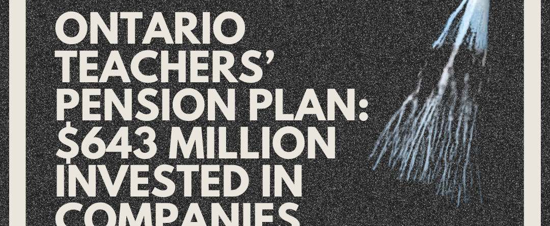 Total for the investments listed on the UN database as well as these others verified by AFSC Investigate and other sources is $642.7 M Million. We note this is less than .5% of the OTPP portfolio so would expect that these adjustments could be made quite easily.