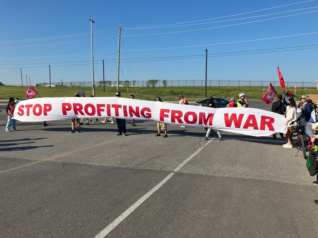 The protest was convened to “oppose CANSEC and the profiteering from war and violence it is designed to support”, promising to “make it impossible for anyone to come anywhere near their weapons fair without confronting the violence and bloodshed these arms dealers are complicit in.”