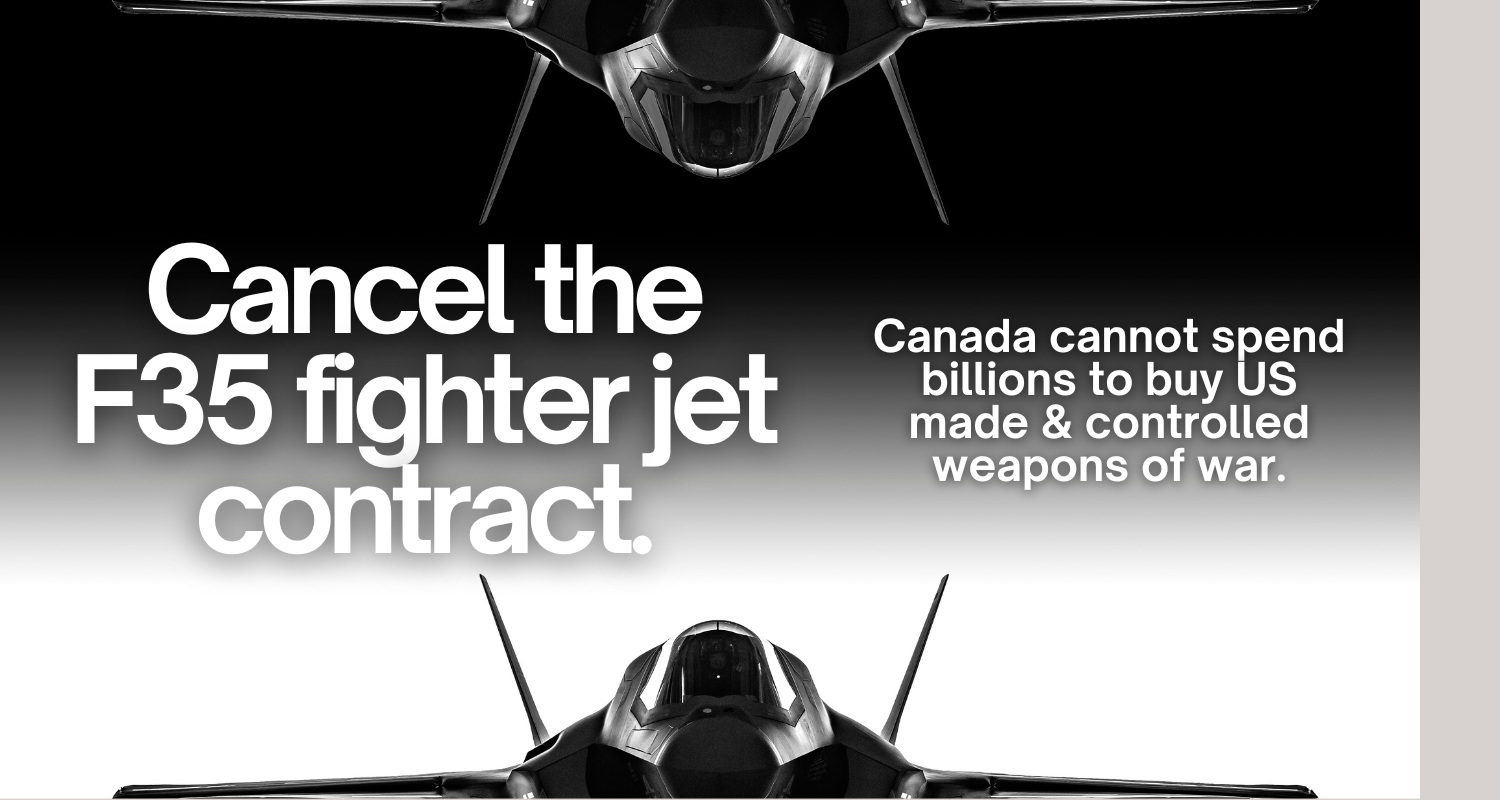 “It is unfathomable Canada would move ahead with purchasing 88 wildly expensive F-35 fighter jets the U.S. would effectively control,” said Rachel Small, Canada Organizer for World BEYOND War. “These are the same weapons of war that Canadians have watched in horror over the past 17 months routinely dropping 2000 pounds on Gaza, razing cities and refugee camps. The more Canadians learn about F-35s, the more they want nothing to do with them.”