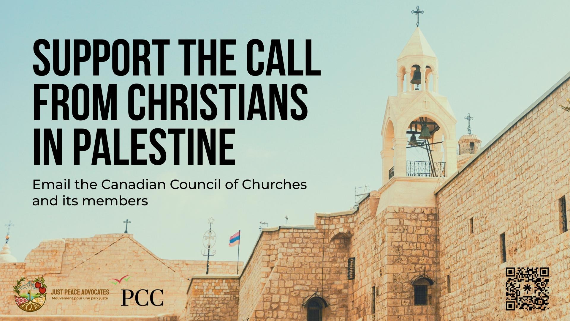 Just Peace Advocates and the Palestinian Canadian Congress as you to send a letter to the Canadian Council of Churches and its member churches asking then to publicly support the new call from Palestinian Christians and take concrete action to put the call into action.