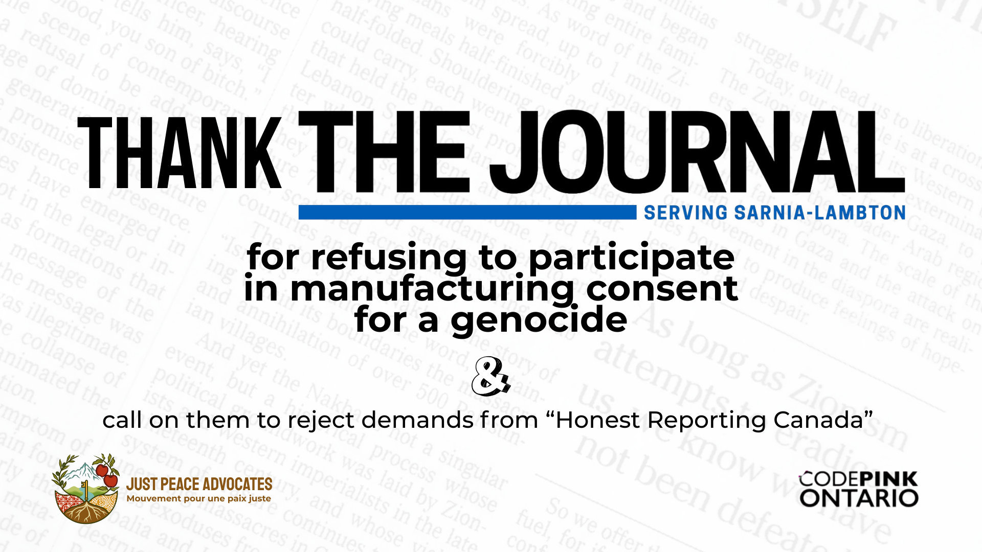 Over the last few weeks, The Sarnia Journal has been facing challenges because of “Honest Reporting Canada” (HRC), the self-proclaimed, “Israeli digital army” and far-right charity subsidized by Canadian tax dollars. HRC promotes anti-Palestinian racism, spreads misinformation, and leads campaigns to harass journalists and media outlets in Canada; and now they have been going after The Sarnia Journal. HRC is arguing that published Letters to the Editor are anti-Semitic hate messages and is demanding The Journal take them down.